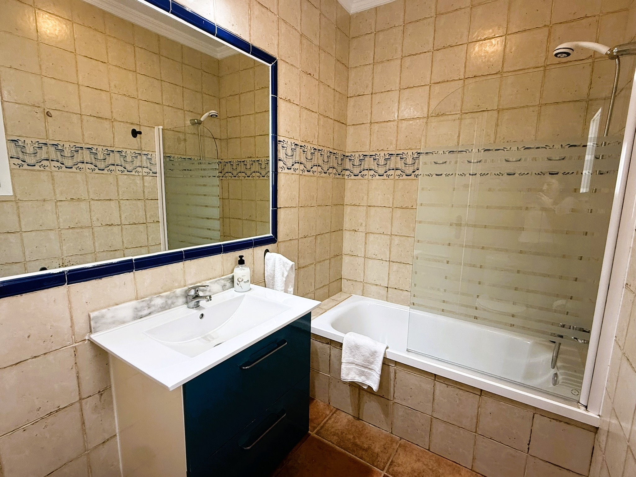 La villa dispose de deux salles de bain : l'une avec une baignoire et l'autre avec une douche. L'une de ces salles de bain est une salle de bain attenante.