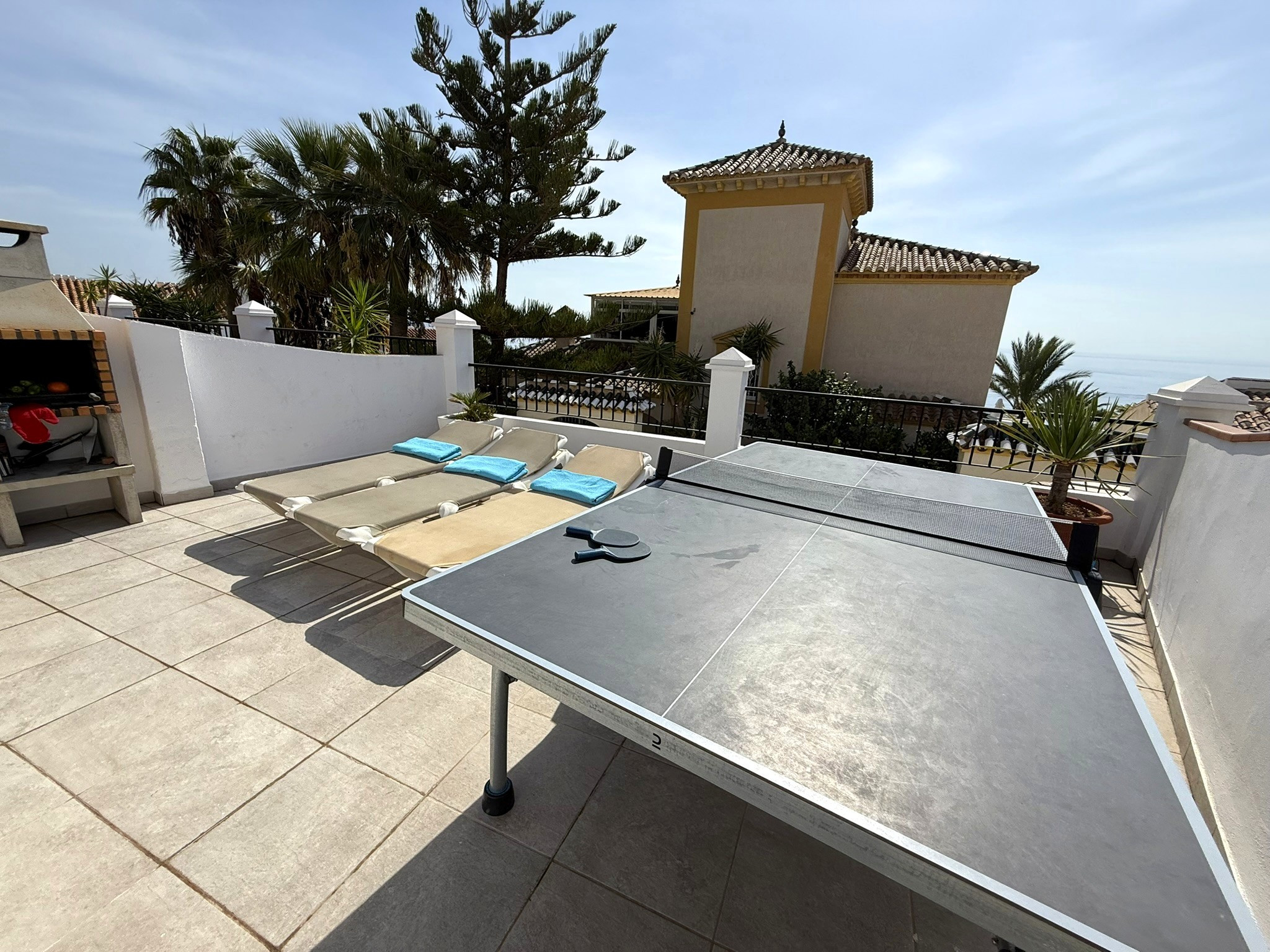 La Villa Los Girasoles est une jolie villa de style campagnard de trois chambres à coucher, située sur une position élevée au-dessus de la zone de Punta Lara à Nerja. Elle est accessible par une bonne route en béton jusqu'à 50 mètres de la maison lorsque la route devient une piste. Elle offre une vue panoramique imprenable sur la mer, le littoral de Nerja et les montagnes. La plage la plus proche se trouve à environ 1 km et le centre-ville de Nerja à 2 km.