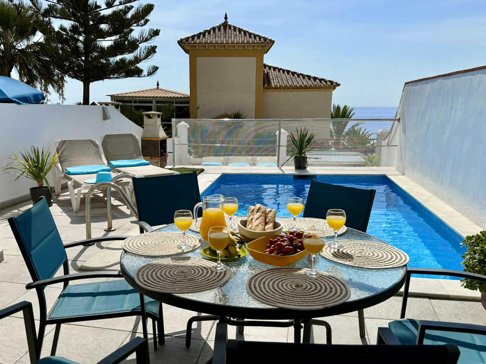 La Villa Azalea est une villa de style méditerranéen de trois chambres à coucher offrant des vues spectaculaires sur la plage de Burriana, la côte et les montagnes du Cerro Gordo.