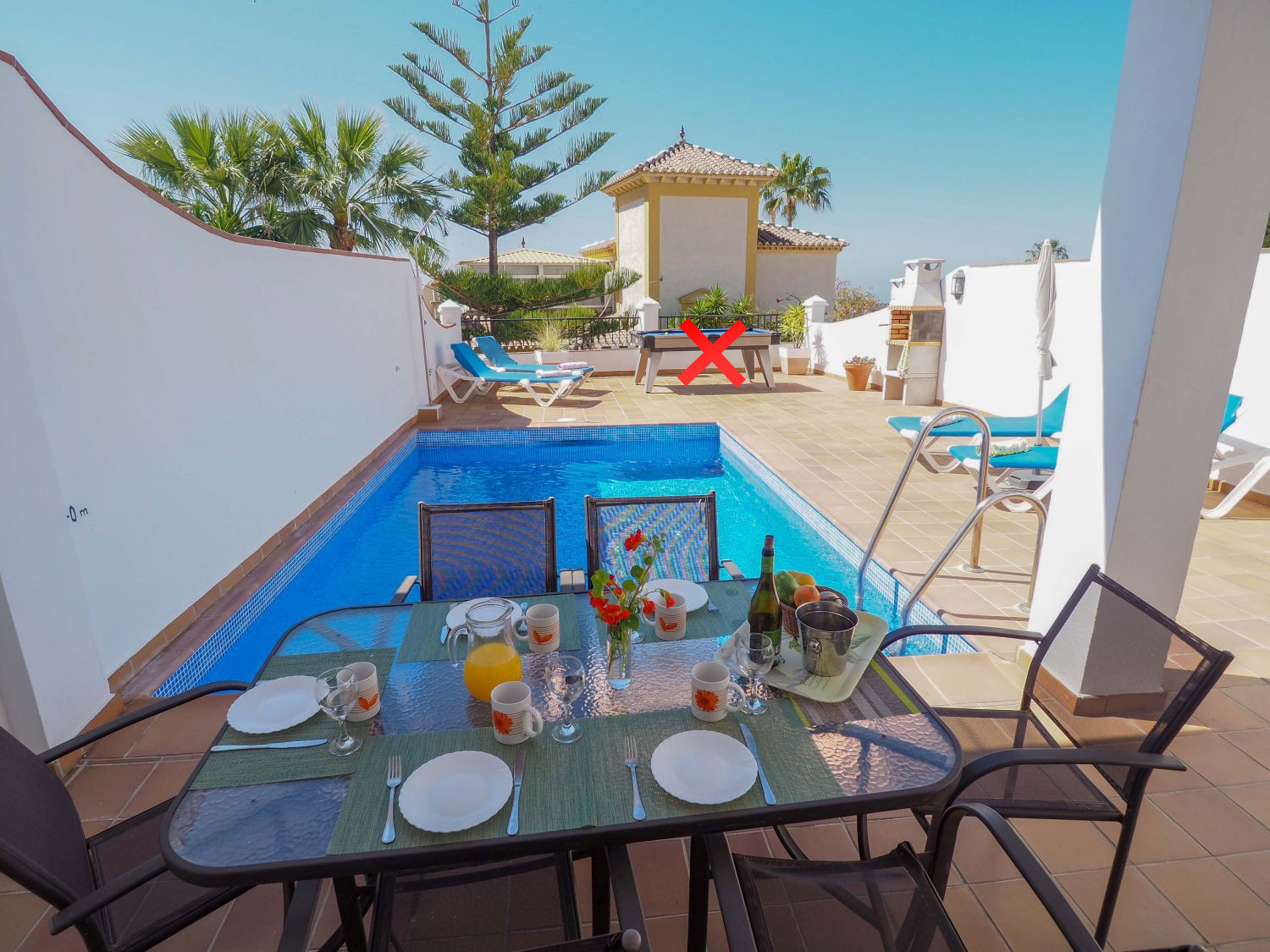 Small swimming pool, good outside area with pool table and table tennis. Plenty of room to sunbathe. All bedrooms are downstairs and have air conditioning, no air conditioning upstairs, but wasn’t a problem. Only ten minutes to beach and 25 minutes walk to balcon in town however only drawback down a steep hill. Ok going down we had taxi coming back late at night. We had a lovely time and would recommend this Villa. |