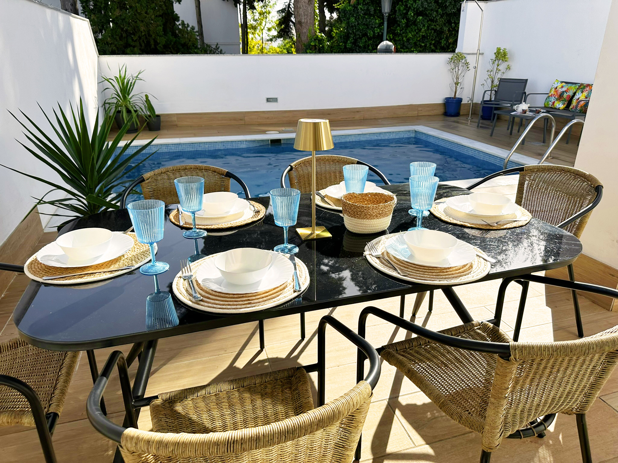 ✔ Outdoor furniture including a dining table and chairs for breakfasts or dinners in the open air.
